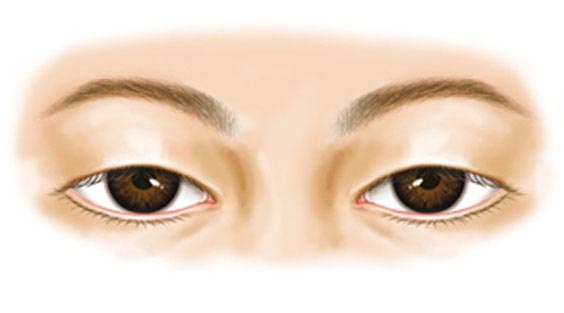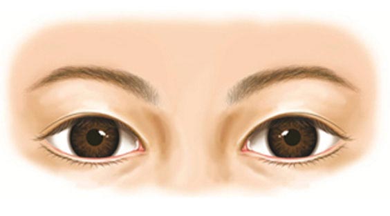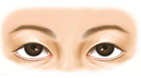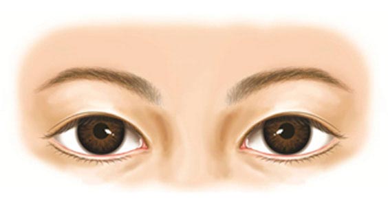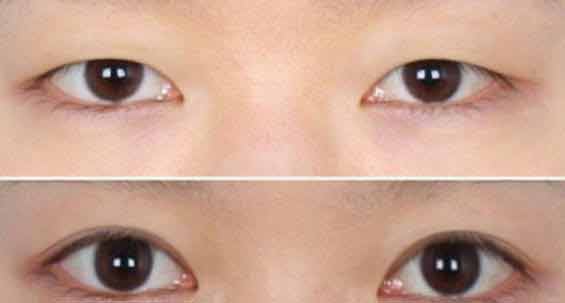2.稍有下垂的眼睛:常见睁眼肌,上眼皮很容易睁开,是外眼皮稍微盖住眼睛的上视眼睑下垂。