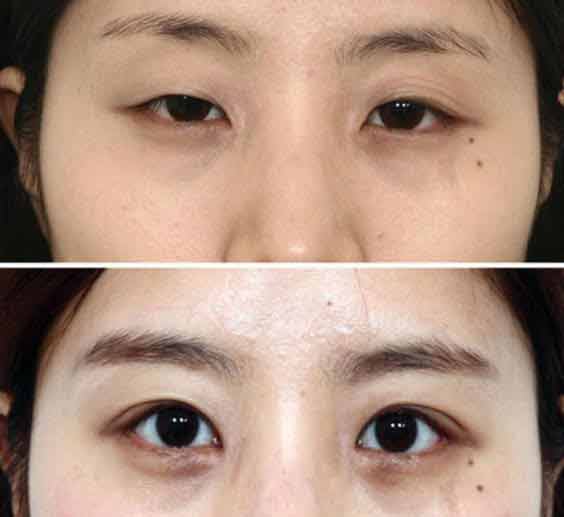 3. Yestar艺星额肌瓣法:沿着双眼皮线做一小切口,通过分离转移额肌瓣完成手术,既避免了切取大腿部筋膜的痛苦,同时还可形成双眼皮,使眼睛增大,恢复神采,效果持久。